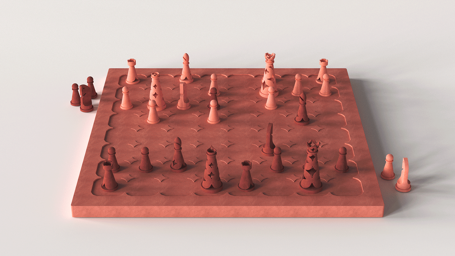 Each piece is a return to origin rather than a reinterpretation of convention. Inspired by chaturanga, Indian material culture, and symbolic roles of power, labor, and intuition, the set rejects the Staunton template entirely. Instead, these forms are abstract, grounded, and shaped by meaning rather than ornament.