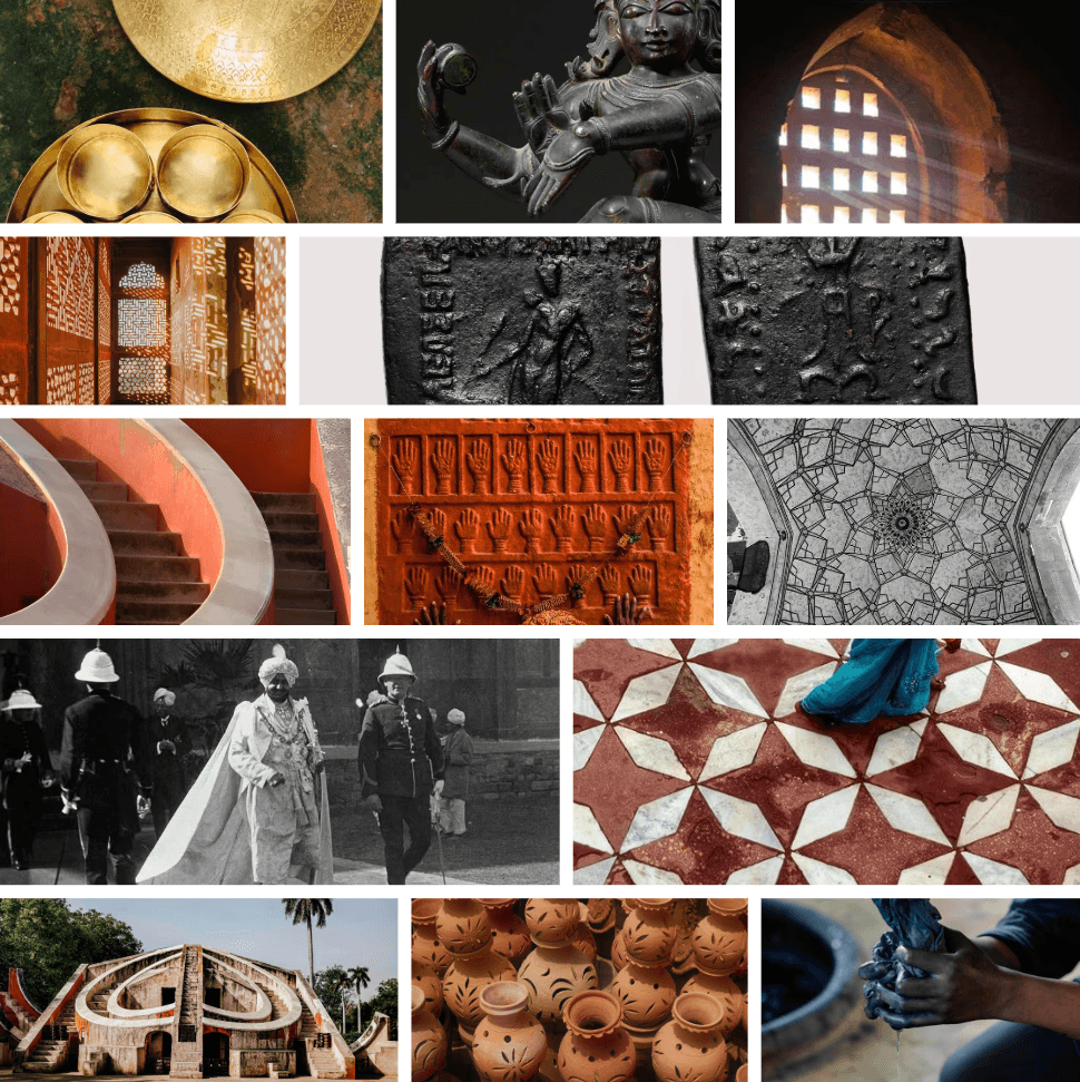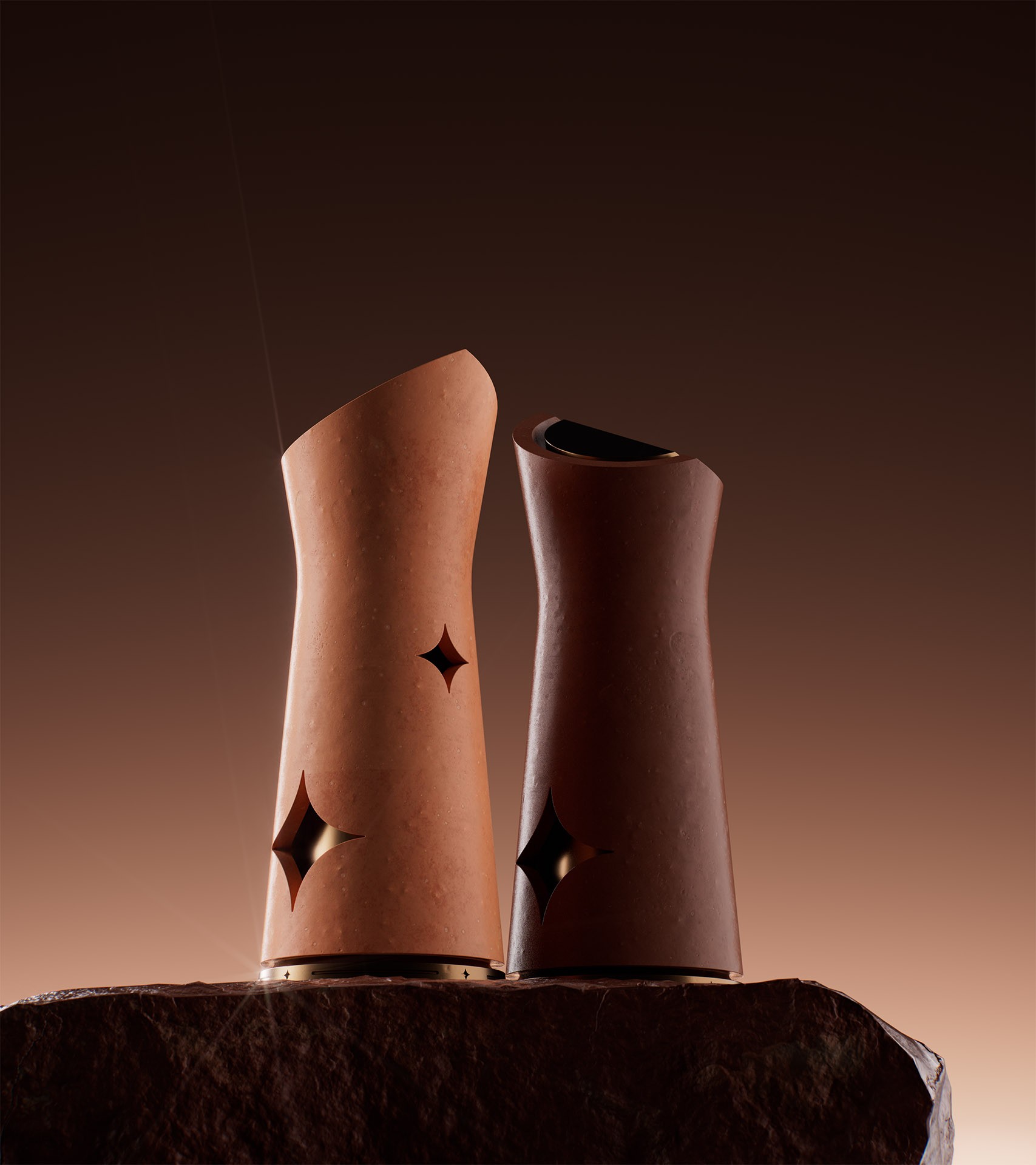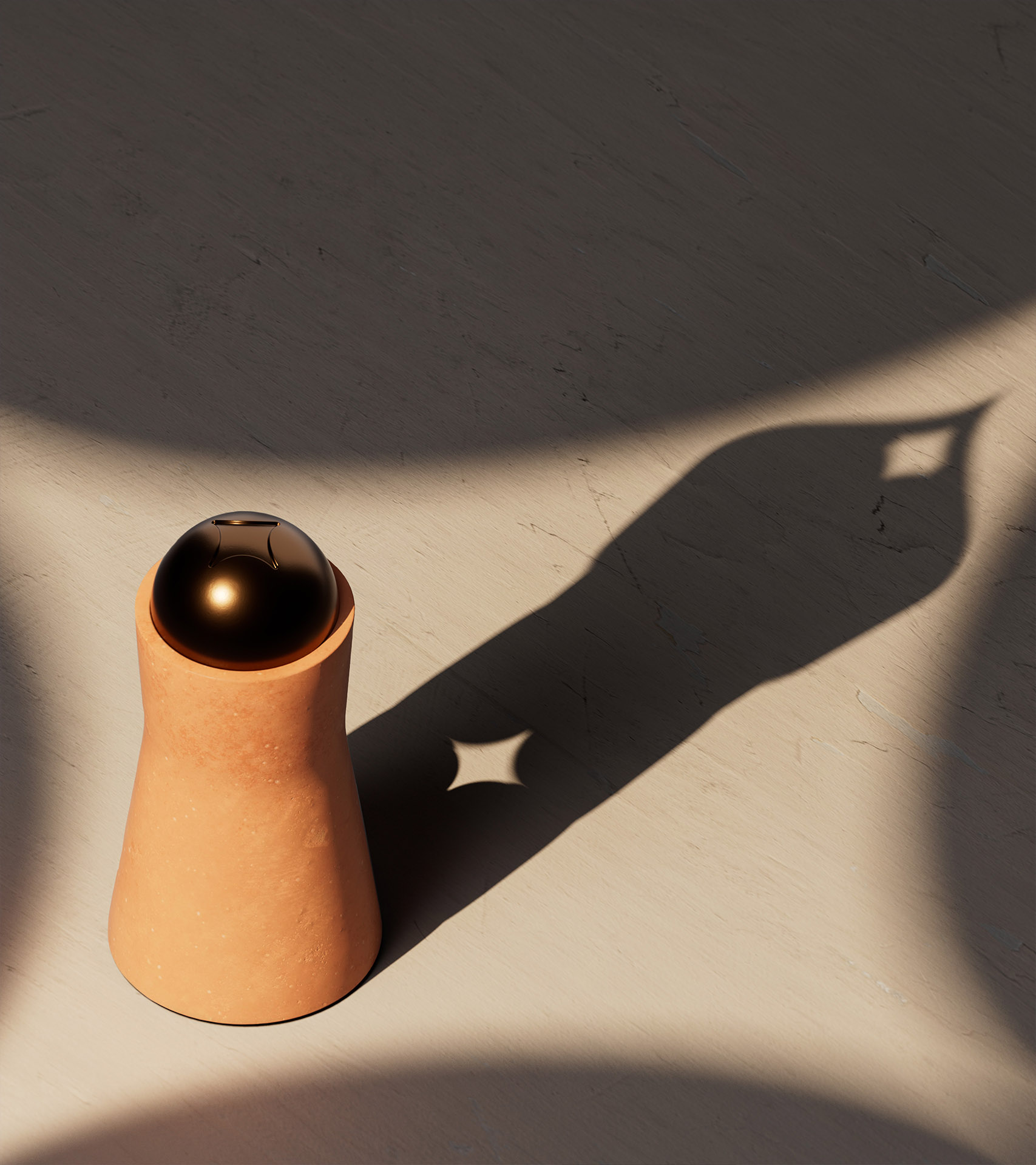 Over thirty sources of inspiration were distilled into three guiding pillars: materials, patterns, and ornamentation. Two material-led directions were developed in parallel, with terracotta and marble explored independently. Terracotta offered greater flexibility and cultural reach, while the need for weight and presence led to the introduction of bronze as a complementary accent.