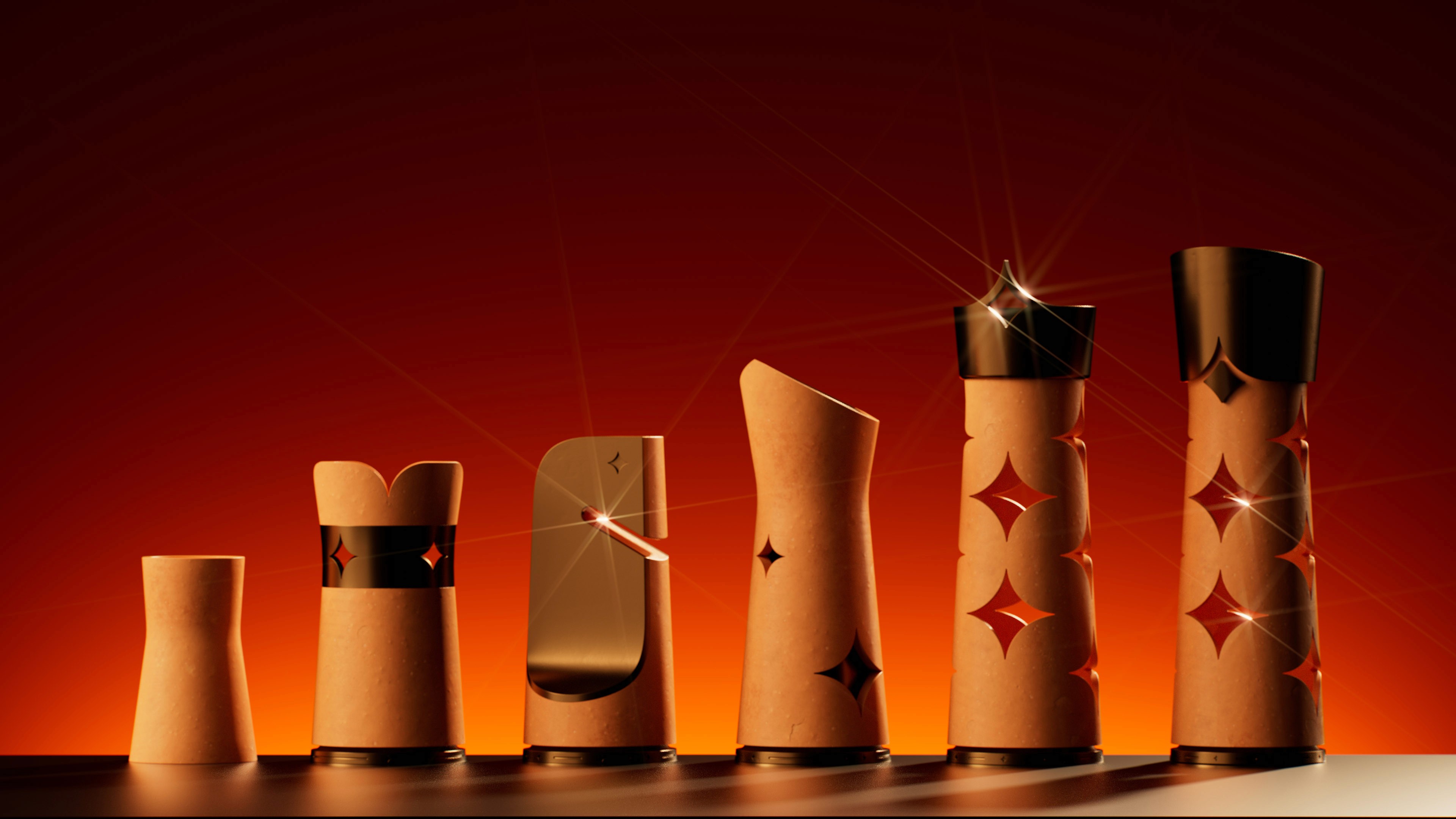 The pawn embodies potential. Its hollowed form anticipates change, allowing a single jewel-like sphere to crown it upon promotion. This gesture turns the pawn to queen transformation into a ritual - one object evolving rather than being replaced - honoring progress, choice, and earned power within the system.