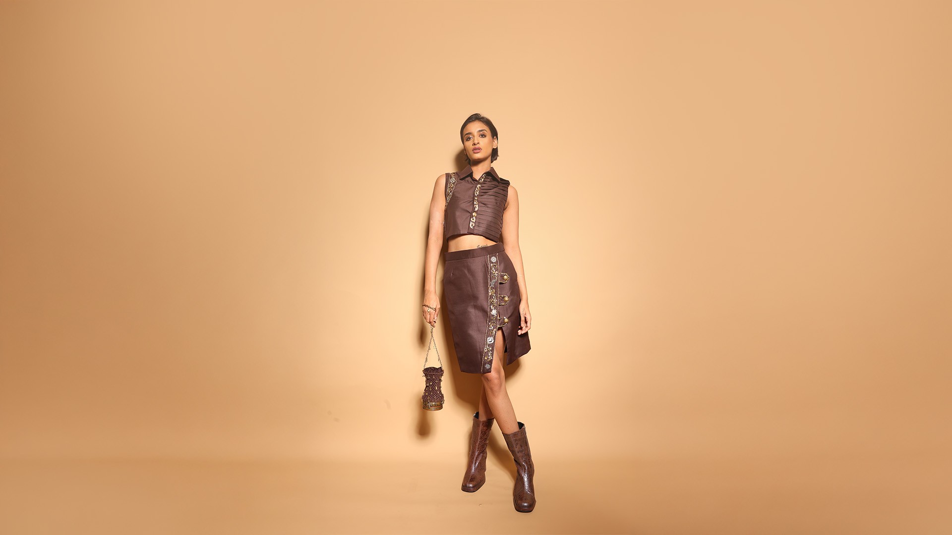 The collection strikes an impressive balance between British colonial silhouettes and contemporary Indian craftsmanship. We appreciate how the neutral color palette allows the intricate vintage details to shine without overwhelming the structured forms. The gramophone record accessories demonstrate thoughtful material repurposing that feels fresh rather than gimmicky.
